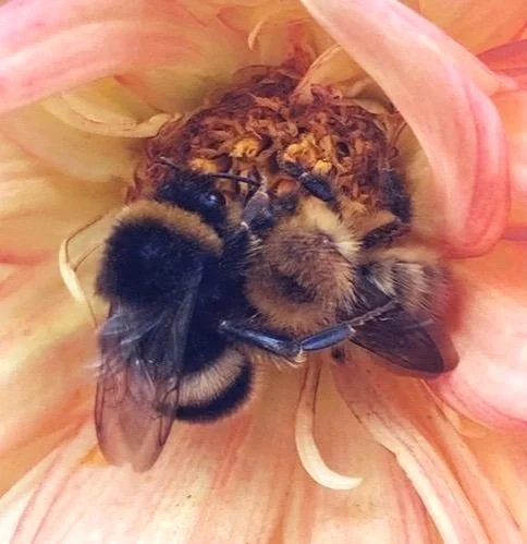 A sad bee - has she lost an antenna? No, it’s an end on view. Bees use antennae to sense their world.