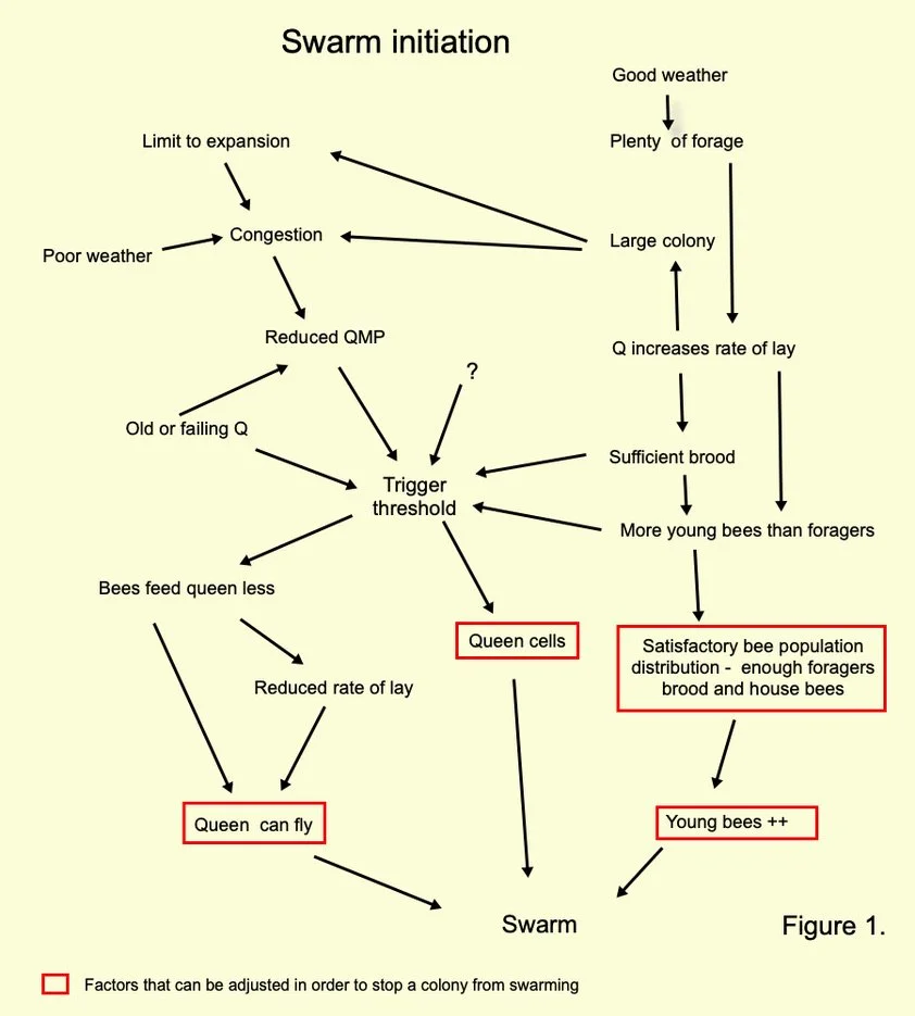 QMP has many effects. Beekeepers are most concerned about its role in swarming. If the Q becomes old or her fecundity falls, her pheromone called QMP reduces, and they swarm.