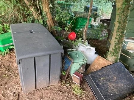 Space: With two hives, they can sit side by side, their entrances facing opposite directions. Your apiary must have enough space to dissemble a hive into three piles. Enough space between hives equates to how much space you need to move around them comfortably. If you use British Standard hives, I recommend initially orienting them cold-way, so an experienced beekeeper can inspect them with you. The area surrounding your apiary will determine your lneed to exterminate less-than-perfect colonies. If your neighbours are close, you may wish to dispatch any colony with bees that follow you 2 metres after an inspection. If this is your criteria, you will kill plenty of colonies.
