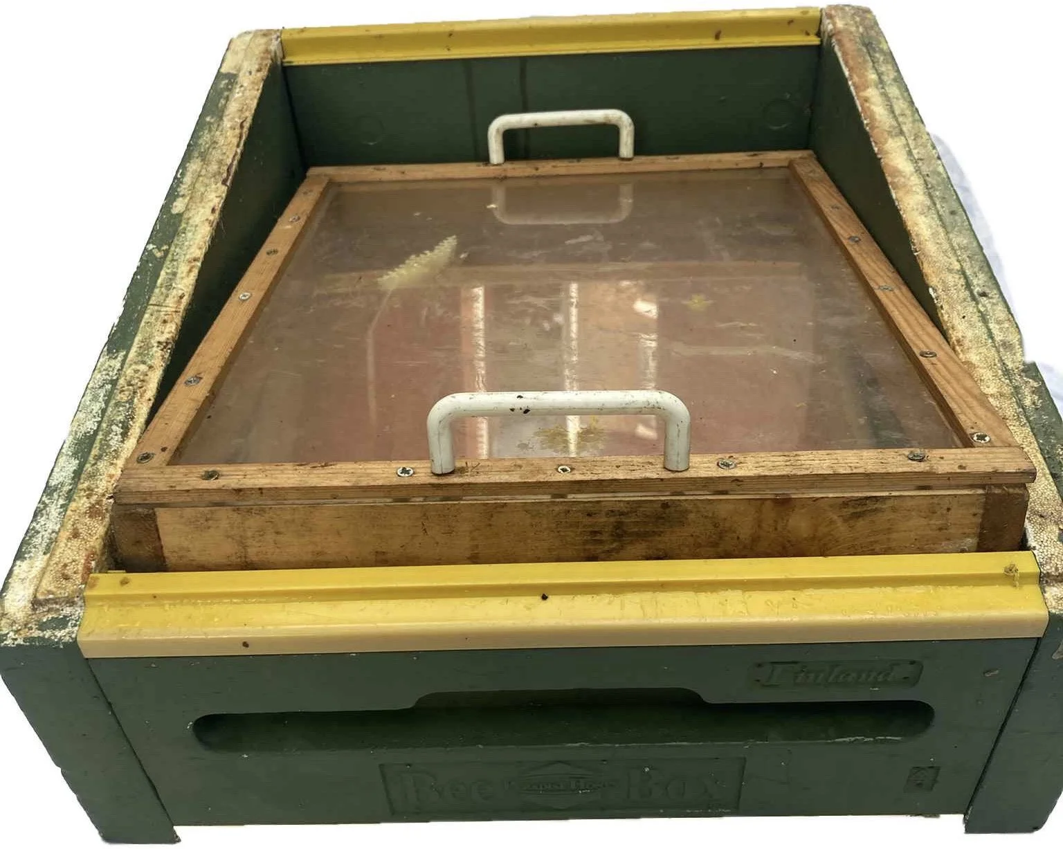 It consists of two parts. The lower one is the board, and the upper one is for access, observation, and to stop the bees from climbing out. The inner portion must fit precisely: 3 mm smaller than the inside dimensions of the box. The frame runners poke out, so it must be pushed in to position from below.